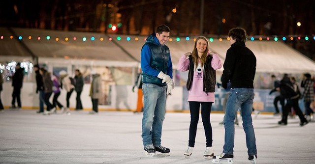 На открытом катке с искусственным льдом общей площадью 5600 кв. метров свободно разместятся выпускники целого факультета или несколько параллелей в школе. Для ценителей фигурного катания и хоккея открыто уютное кафе со свежей сдобой, десертами и бутербродами. Согреться можно глинтвейном и чаем.